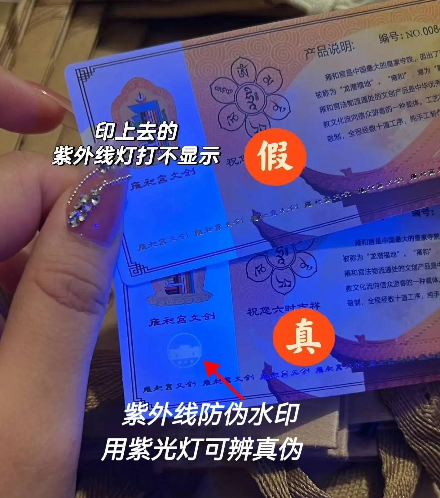 📍雍和宮正品渠道的瓷手串附帶官方防偽卡,用紫光燈可以驗真偽。