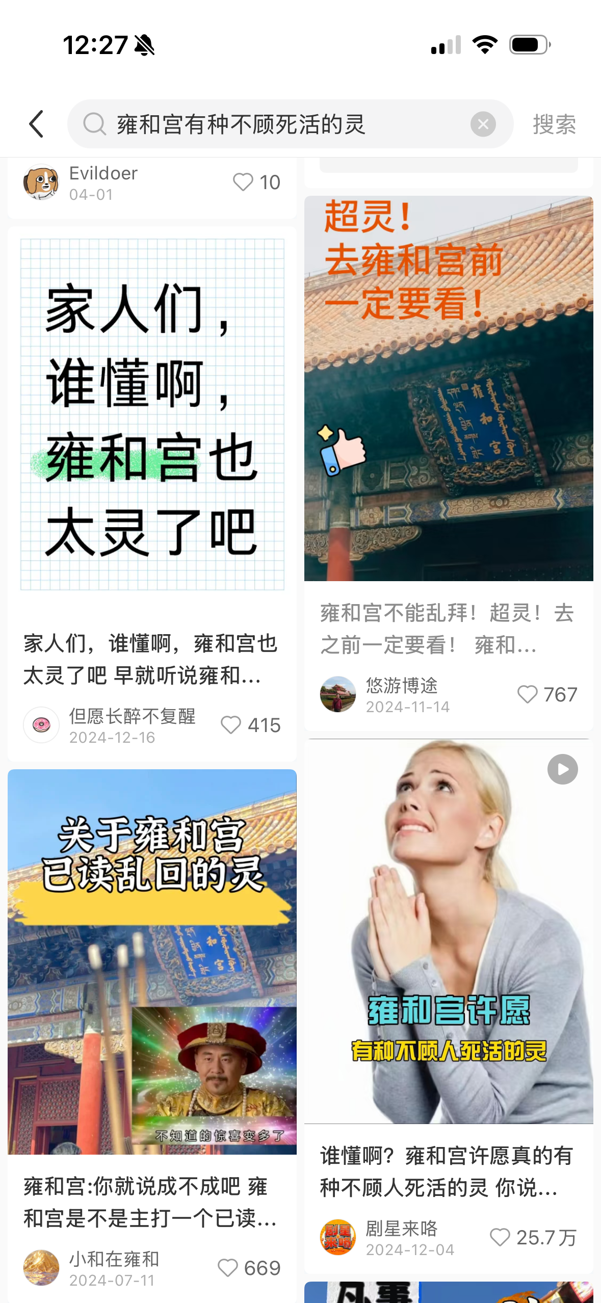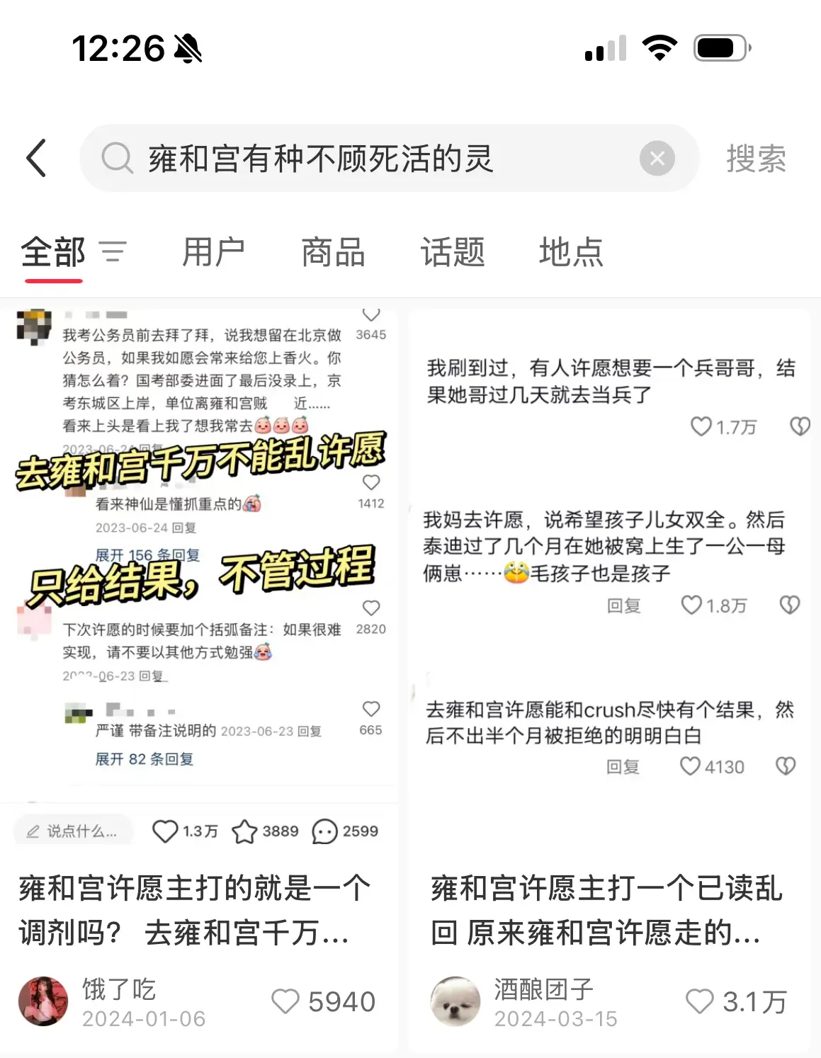 社交媒體上搜索“雍和宮靈”常能搜出幾千篇,且點贊高達幾十萬。