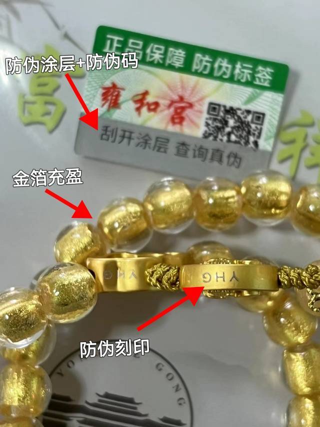 📍雍和宮同源渠道的正品心咒手環配有官方防偽卡,卡片正下方有「雍和宮」紫外線防偽水印。