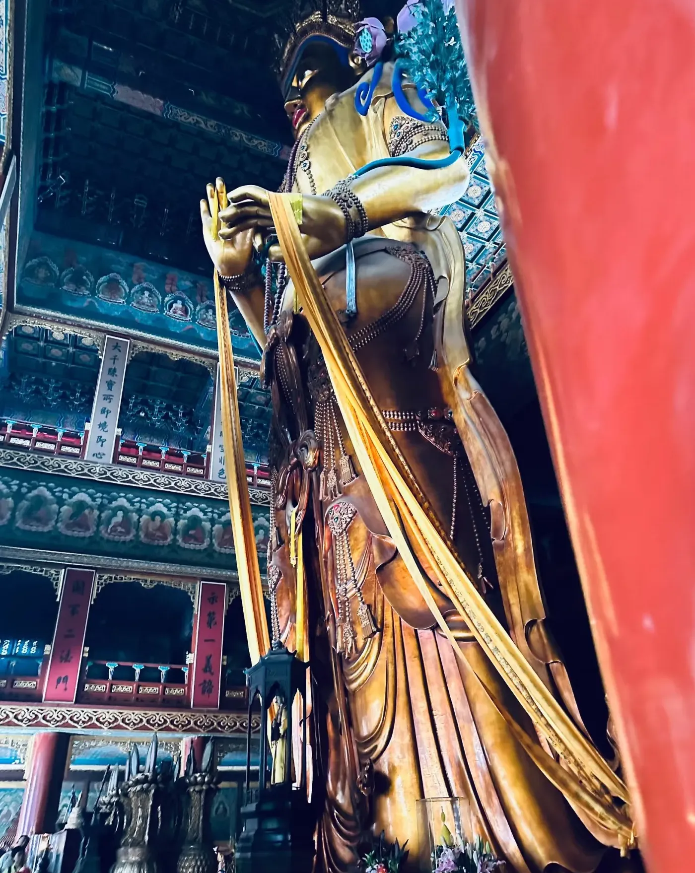 ✅ 万福阁18米高白檀木弥勒大佛。✅ 金丝楠木佛龛,位于照佛楼内,通高5.5米,全部由金丝楠木打造,表面雕有99条栩栩如生的金龙。✅ 五百罗汉山,位于法轮殿内,由紫檀木雕刻而成,高近5米