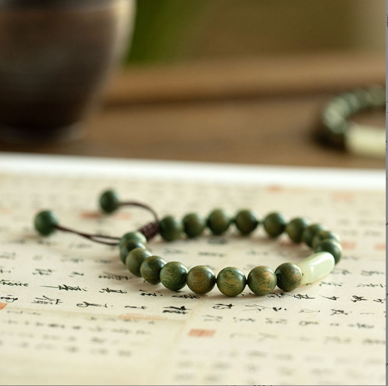Green Sandalwood Buddha Bead Bracelet - Calm and Serene Mind